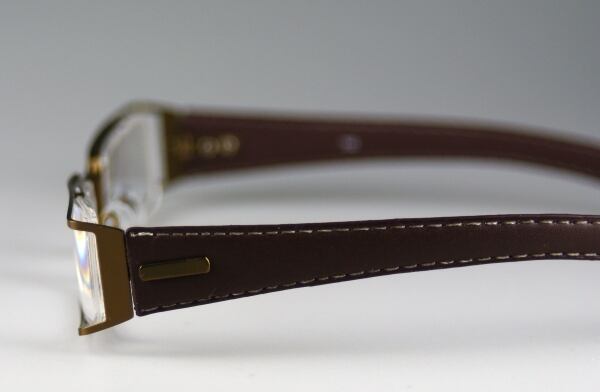 テンプルがレザーテンプルのおしゃれな細身のシニアグラス(老眼鏡)です。